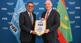 عقد رئيس الاتحادية الموريتانية لكرة القدم، السيد أحمد ولد يحي، اجتماع عمل مثمر مع رئيس الاتحاد الدولي لكرة القدم، السيد جياني إينفانتينو، صباح اليوم الأربعاء في مقر الفيفا بباريس، تناول فيه الطرفان الخطوط العريضة لبرنامج التطوير الخاص بكرة القدم الموريتانية، إضافة إلى قضايا أخرى تتعلق بكرة القدم الأفريقية والعالمية. ووافق الفيفا على خطة العمل التي طرحها رئيس الاتحادية الموريتانية لكرة …