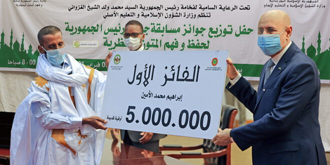 حددت وزارة الشؤون الإسلامية والتعليم الأصلي الرابع عشر مارس الجاري موعدا لتوزيع جوائز النسخة الثانية من مسابقة رئيس الجمهورية لحفظ وفهم المتون المحظرية.